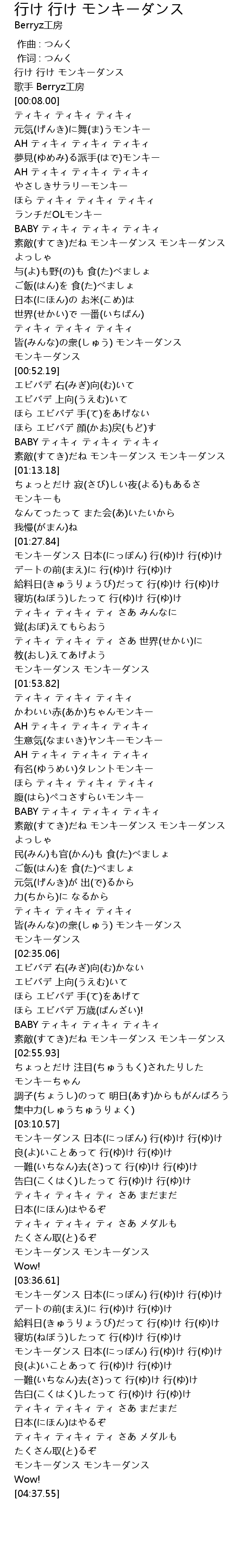 | [04:13.14] | モンキーダンス 日本(にっぽん) 行(ゆ)け 行(ゆ)け |