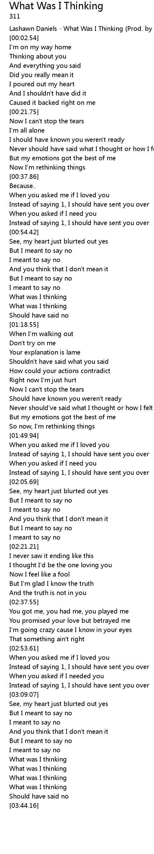 Never should've said what I thought or how I felt |