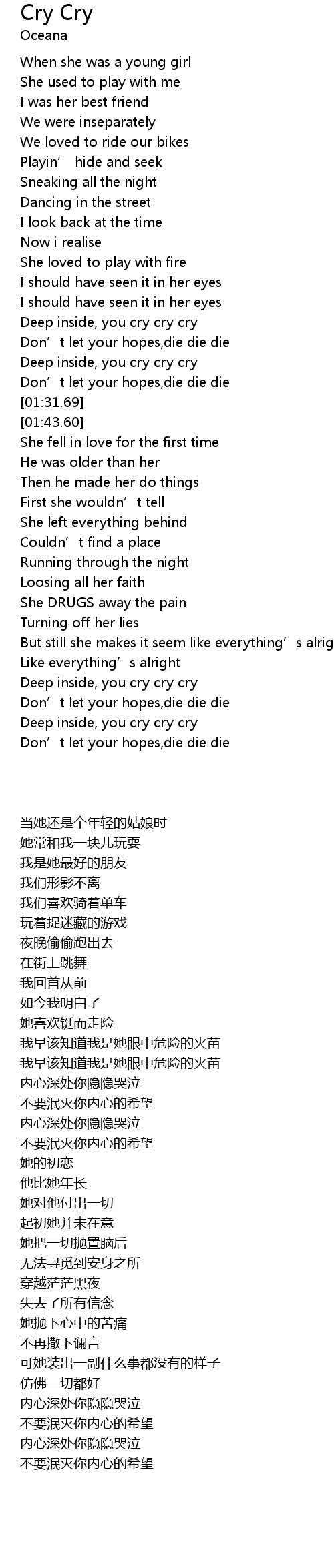 | [02:51.82] | Deep inside, you cry cry cry |