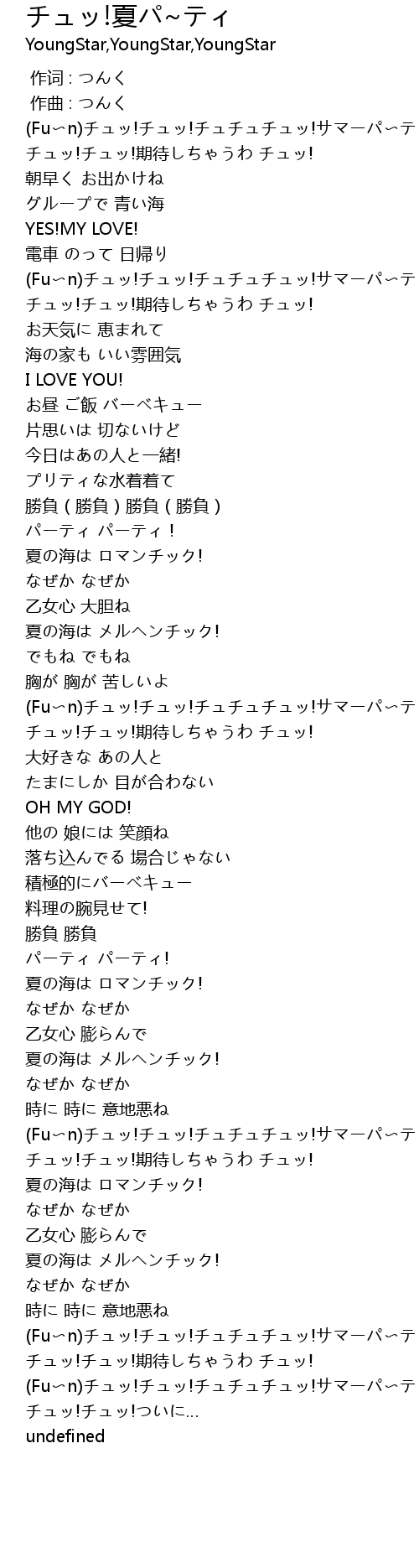 [00:05.33] (Fu〜n)チュッ!チュッ!チュチュチュッ!サマーパ〜ティ
