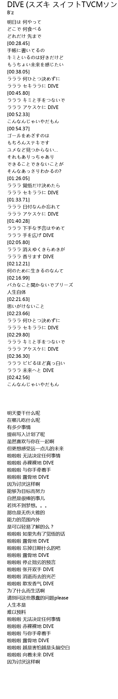 DIVE (スズキ スイフトTVCMソング) 歌词