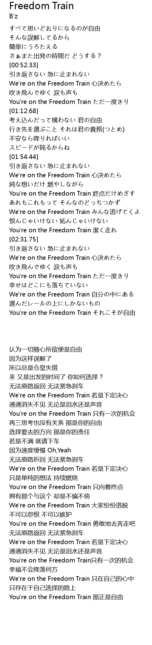 | [02:26.78] | You' re on the Freedom Train jié zǒu |