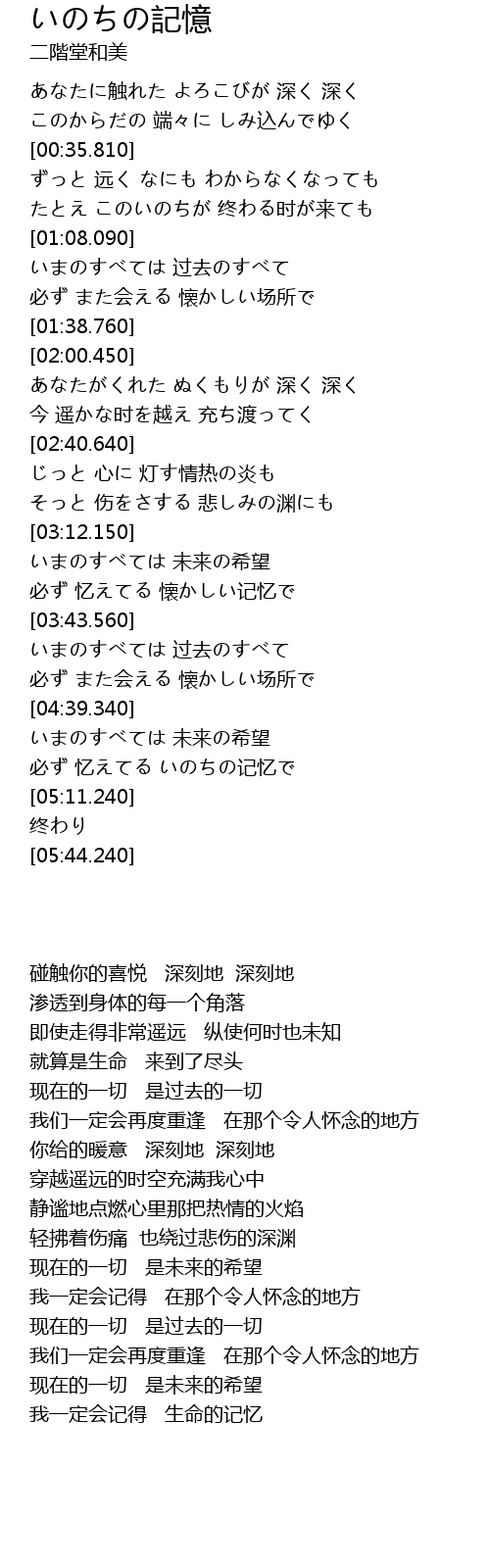 必ず 忆えてる いのちの记忆で |