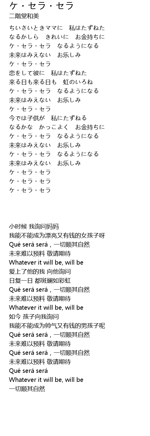 | 歌曲 | ケ・セラ・セラ |