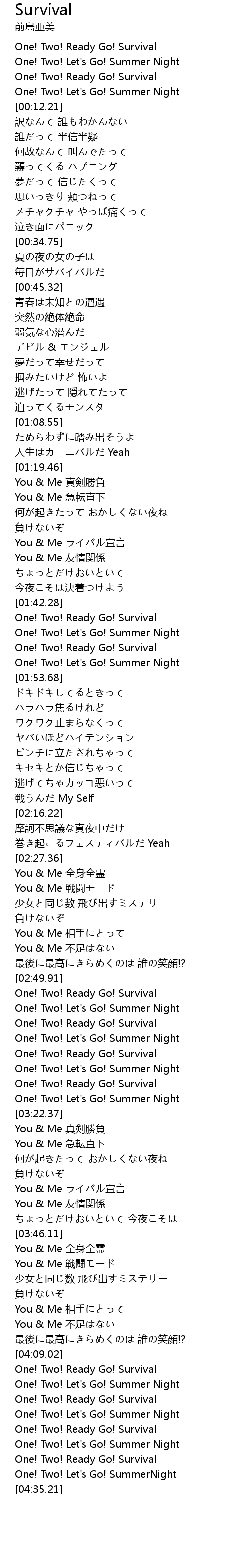 | [02:56.19] | One! Two! Ready Go! Survival |