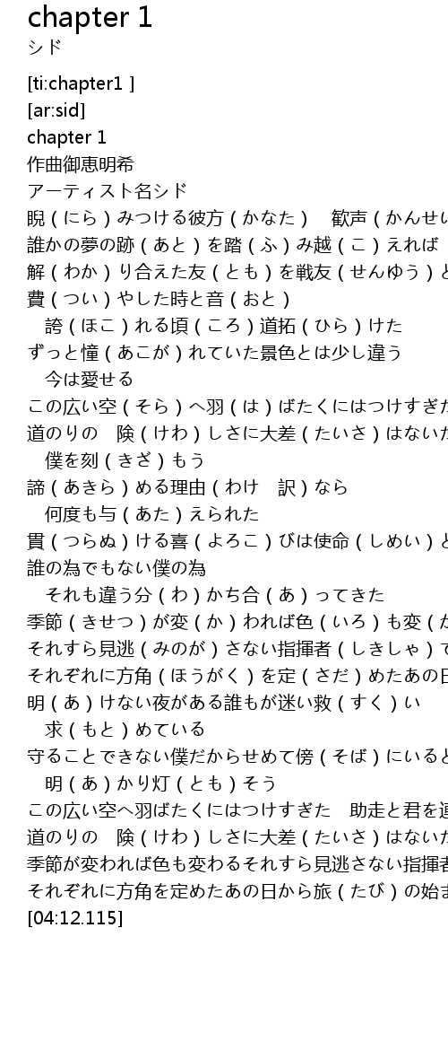 | [00:33.433] | 費(つい)やした時と音(おと) 誇(ほこ)れる頃(ころ)道拓(ひら)けた |