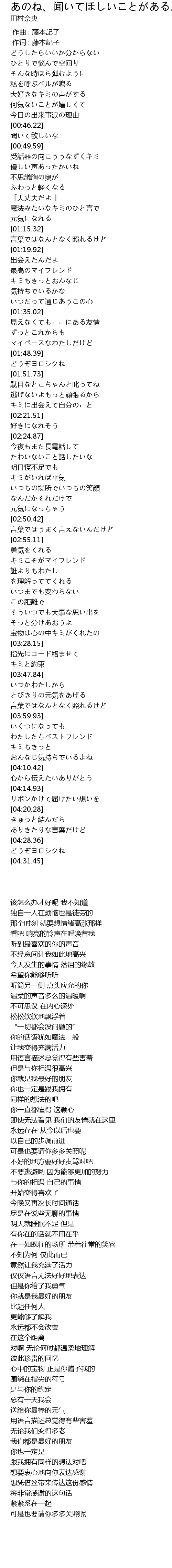 | [00:46.75] | 聞いて欲しいな |