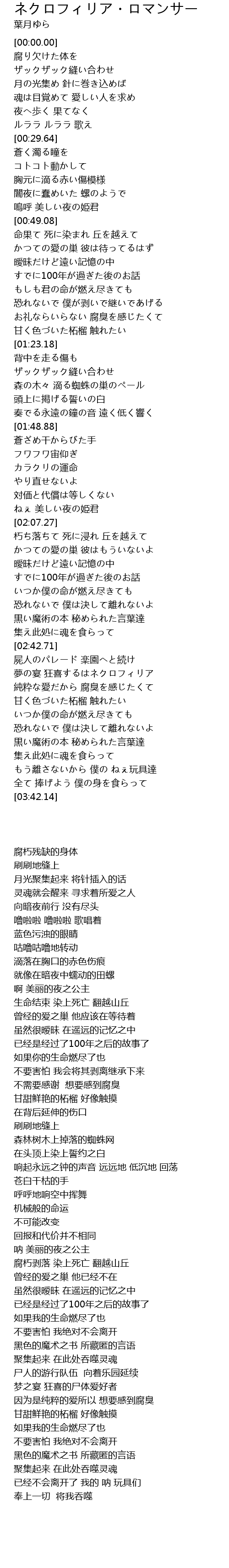 | [03:04.49] | 夢の宴 狂喜するはネクロフィリア |
