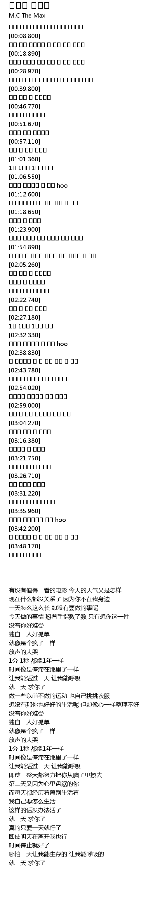 | [02:29.210] | 1분 1초가 1년만 같아 |