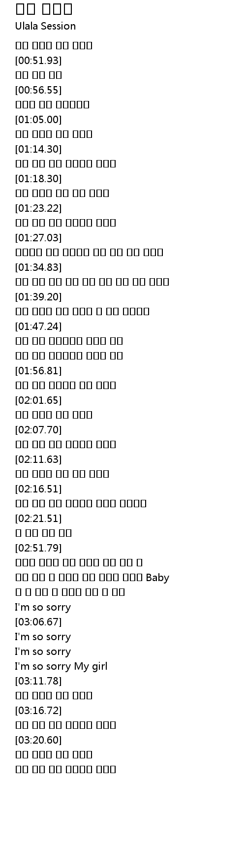 | [01:19.66] | 미안 미안해 정말 미안 미안해 |