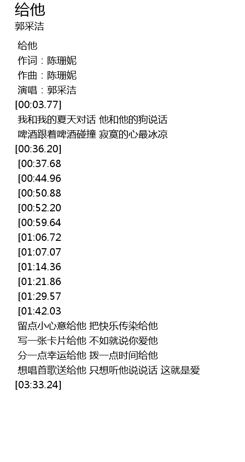 | [00:00.00] | 给他 |