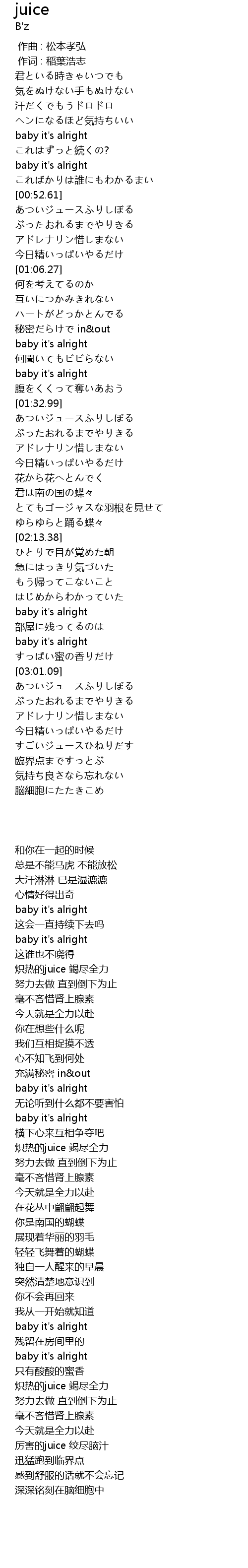 | [00:53.54] | 炽热的juice 竭尽全力 |