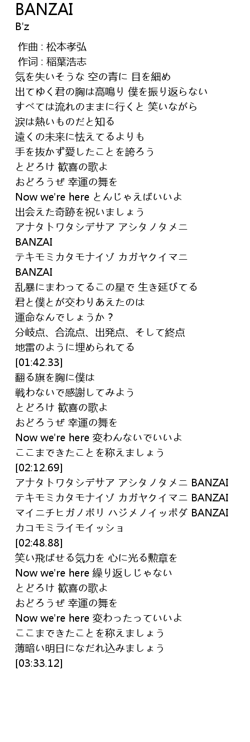 | [00:01.00] | 作词 : 稲葉浩志 |