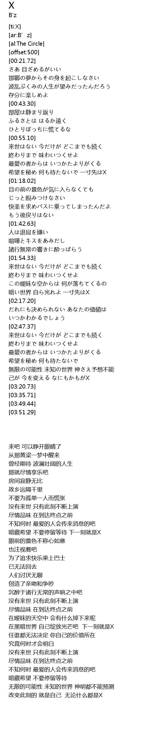 | [03:12.93] | 己が 今を変える なにもかもがX |