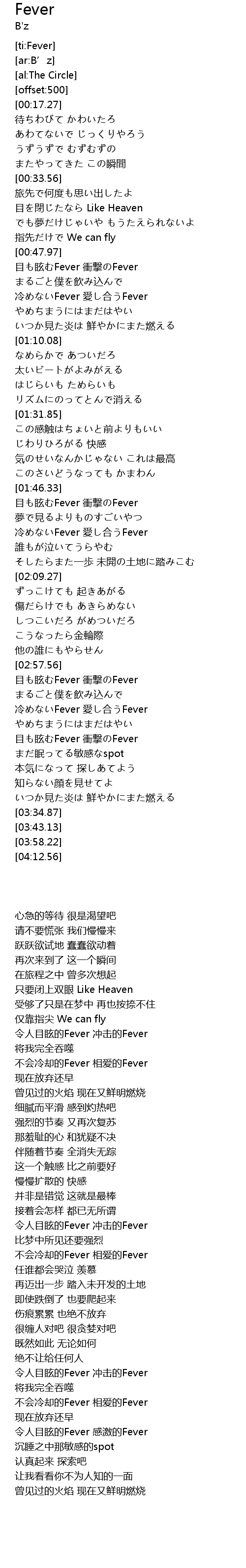 | [02:58.01] | 令人目眩的Fever 冲击的Fever |