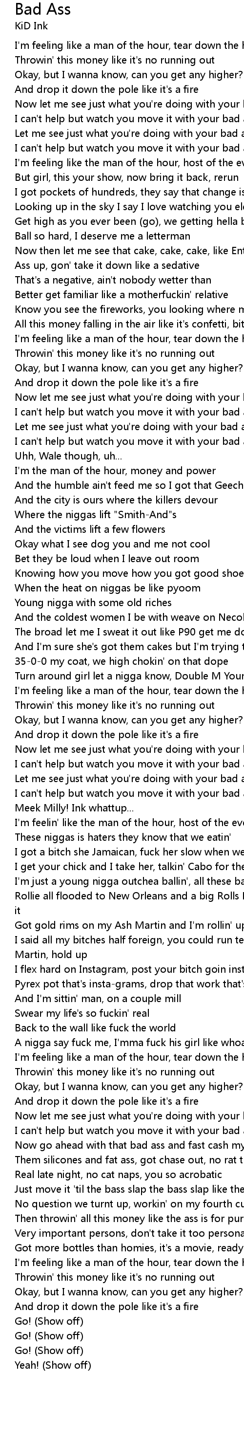 Now go ahead with that bad ass and fast cash my dash pass |