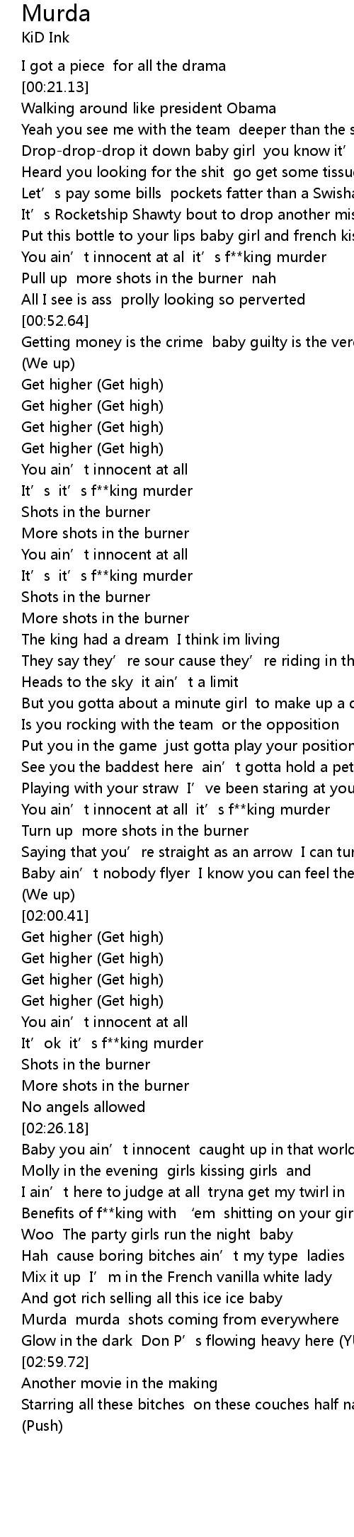 | [00:43.76] | You ain' t innocent at al it' s f king murder |