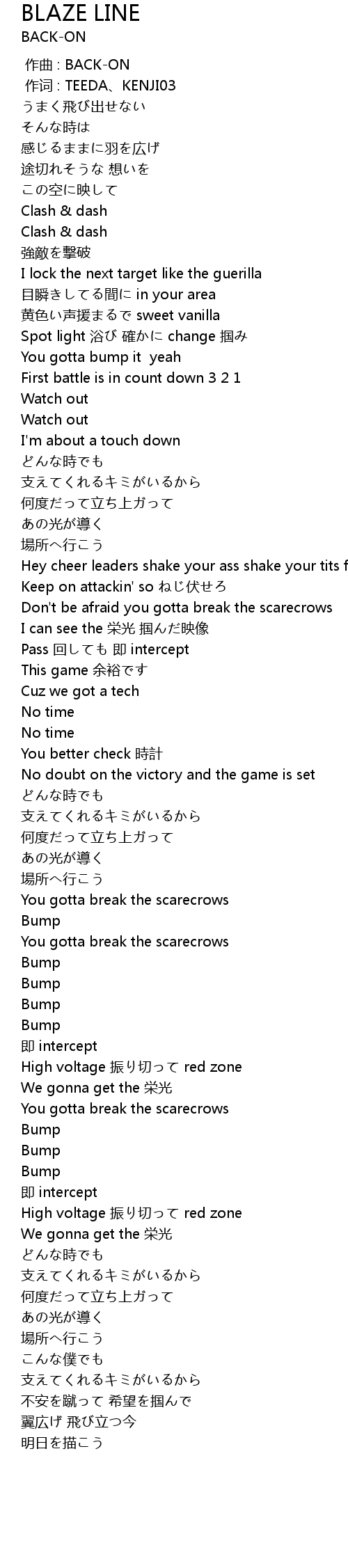 | [00:01.00] | 作词 : TEEDA、KENJI03 |