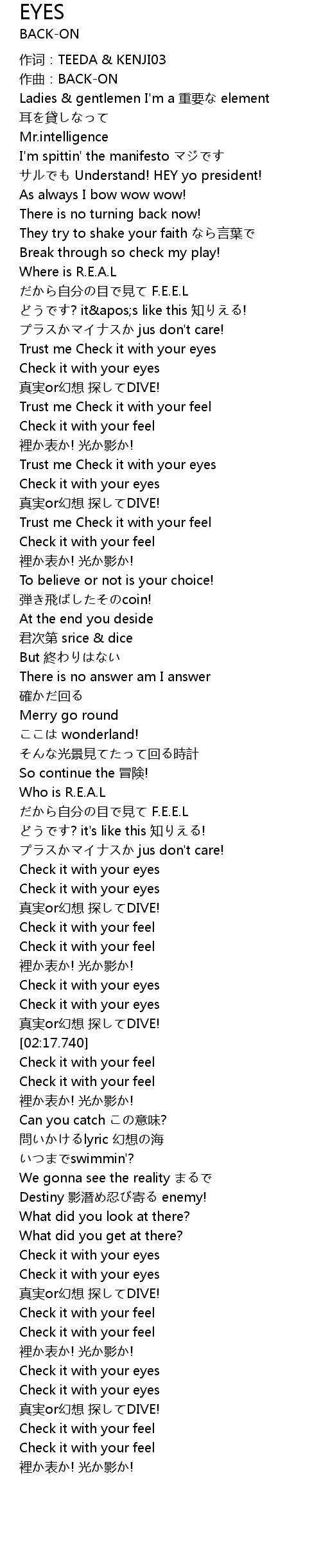 | [00:42.430] | サルでも Understand! HEY yo president! |