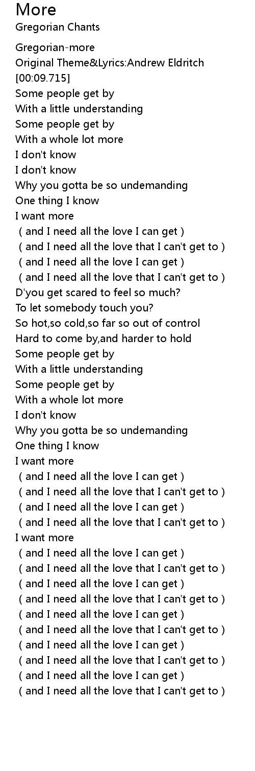 | [04:18.487] | (and I need all the love that I can't get to) |