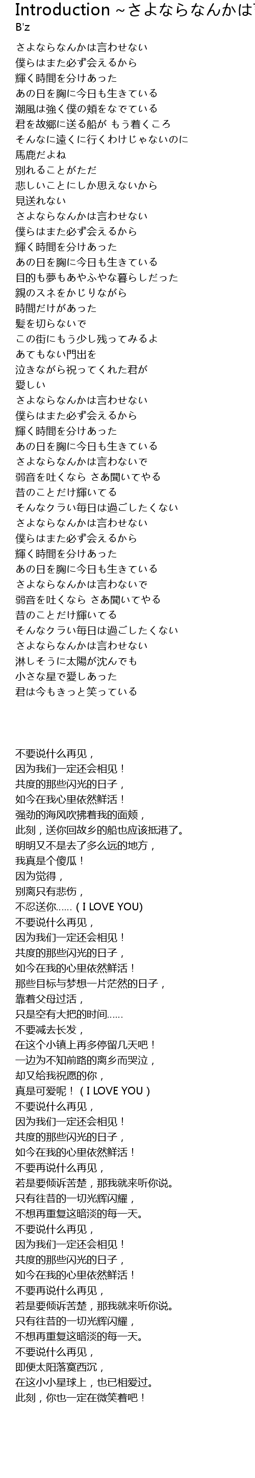 | 歌曲 | Introduction ~さよならなんかは言わせない ~ |