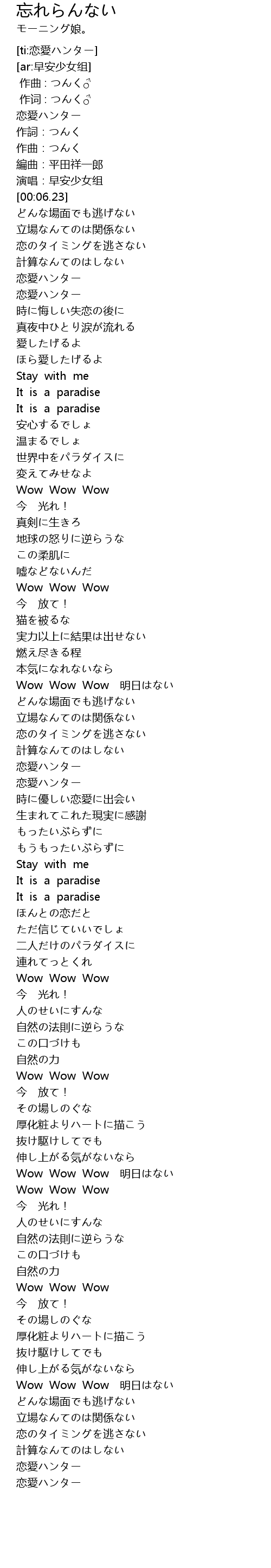 | [04:28.37] | 恋愛ハンター |