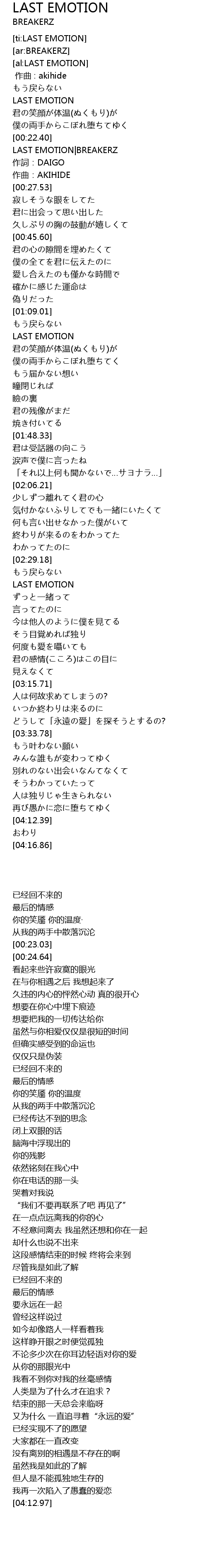 | [00:23.03] | LAST EMOTION|BREAKERZ |