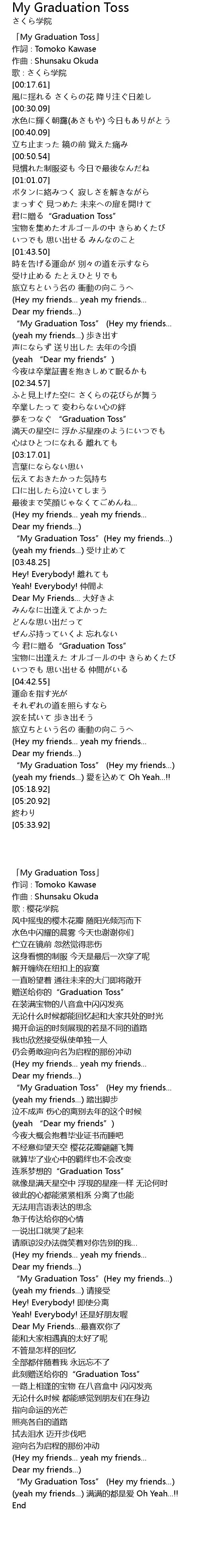 | [04:21.87] | 今 君に贈る“Graduation Toss” |