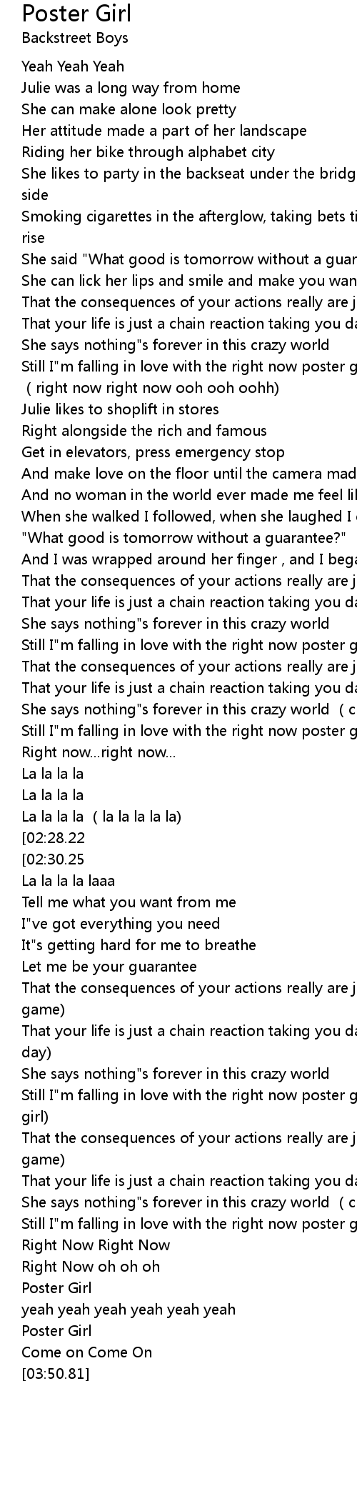 | [03:05.26] | Still I" m falling in love with the right now poster girl poster girl |