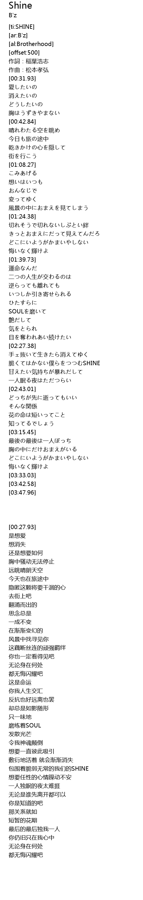 | [02:31.92] | 包围着脆弱无常的我们的SHINE |