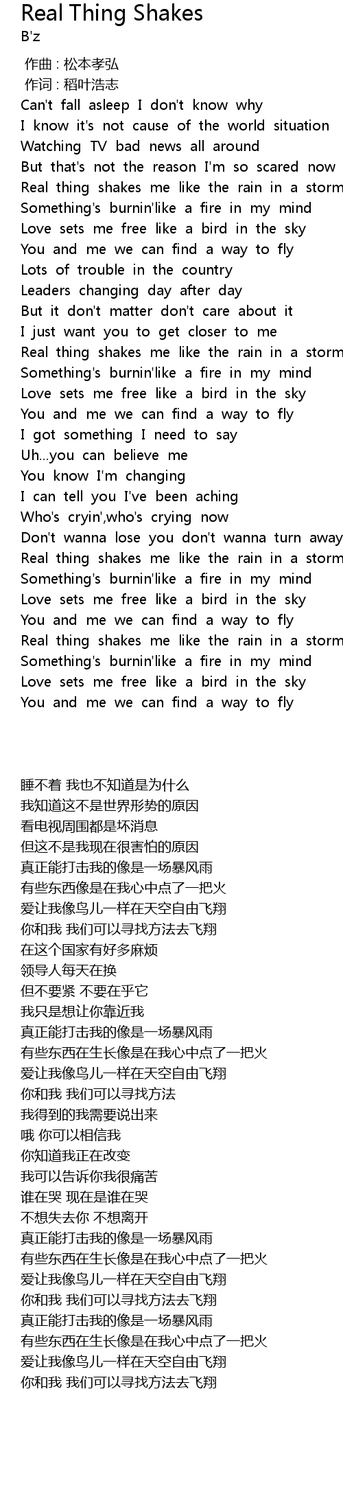 | [00:47.58] | Real thing shakes me like the rain in a storm |