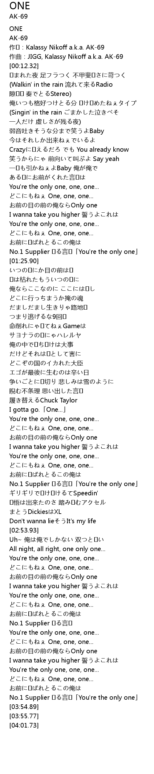 | [00:06.11] | 作�:Kalassy Nikoff a.k.a. AK-69 |