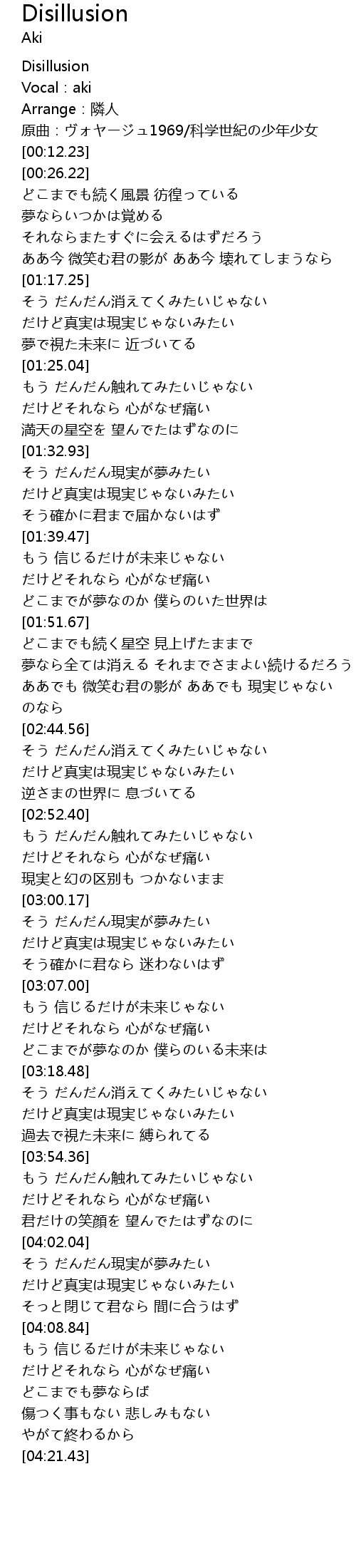 | [00:03.27] | Vocal:aki |