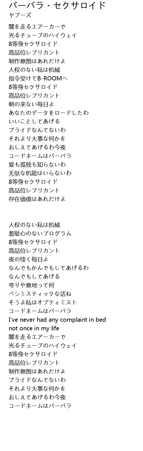 | 歌曲 | バーバラ・セクサロイド |