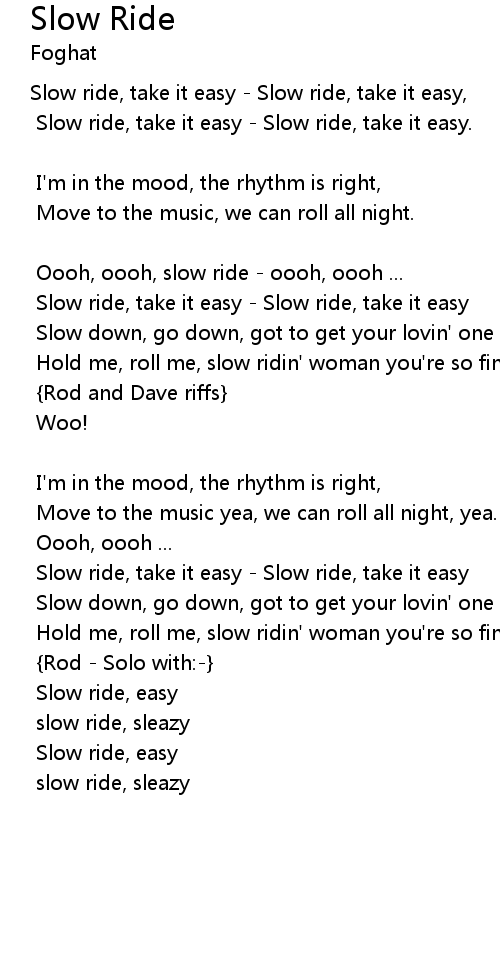 Slow ride, take it easy - Slow ride, take it easy, |