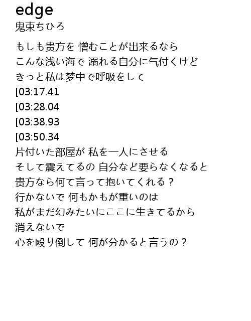 | [01:17.31][03:38.93] | 消えないで こんなに胸を荒らして |