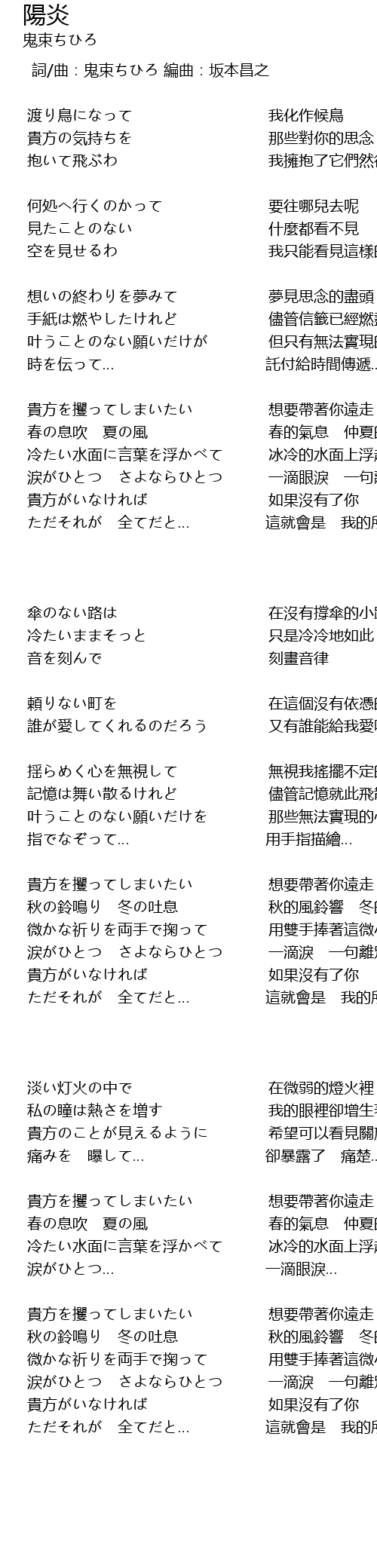 | 歌曲 | 陽炎 |