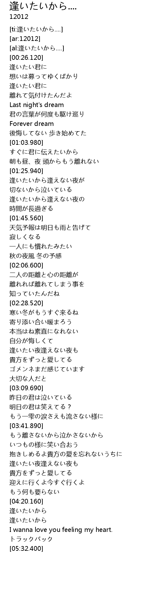 | [05:00.360] | 逢いたいから |