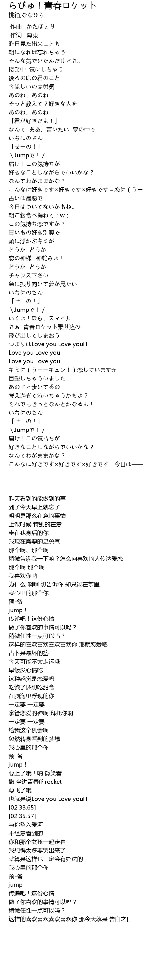 | [02:15.74] | \Jumpで!/ |