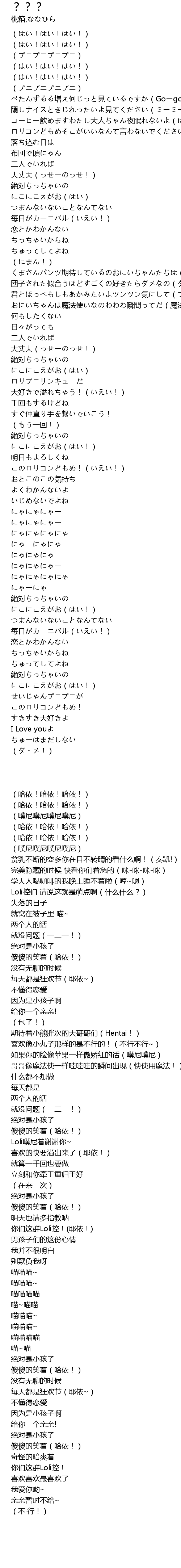 | [00:24.42] | ロリコンどもめそこがいいなんて言わないでください(なになに?) |