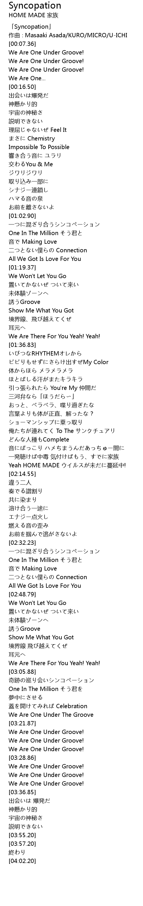 | [03:34.57] | We Are One Under Groove! |