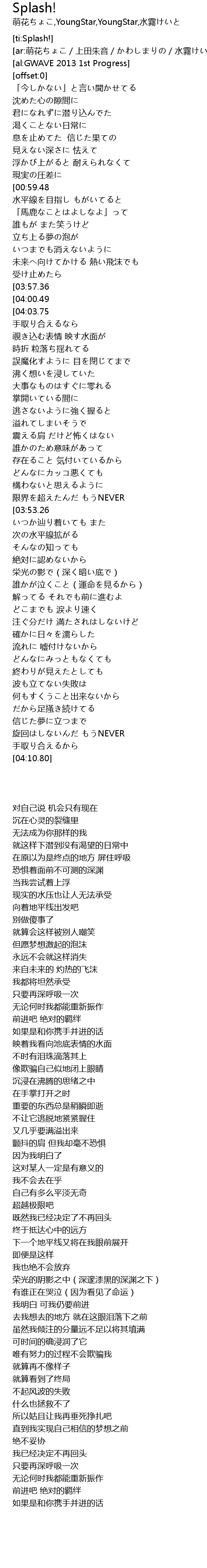 | [02:14.28] | 限界を超えたんだ もうNEVER |