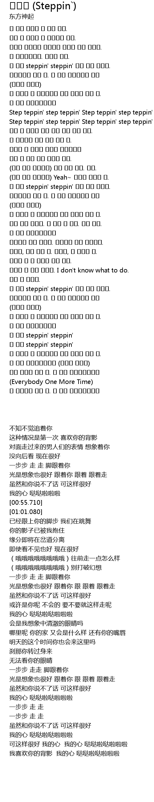 | [00:35.630] | 한 발씩 steppin' steppin' 발이 너를 따라가. |