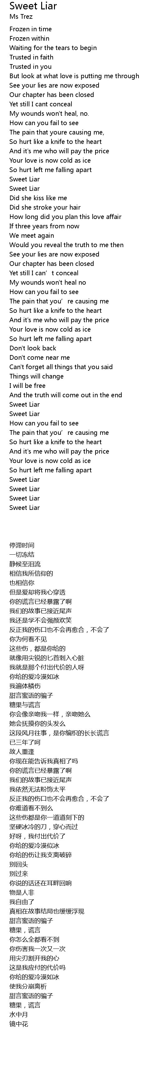 | [01:04.76] | 甜言蜜语的骗子 |