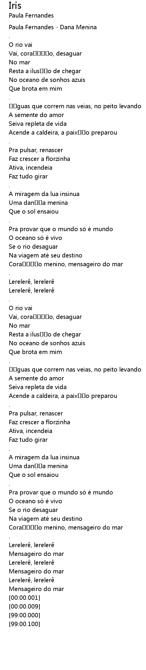 | [00:00.39] | Paula Fernandes Dana Menina |
