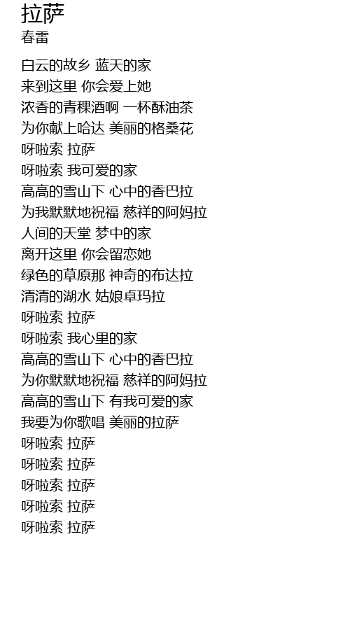 | [03:25.96] | 呀啦索 拉萨 |