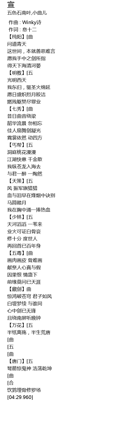 | [04:11.620][曲] | 潇湘魅影 如鲲鹏 |