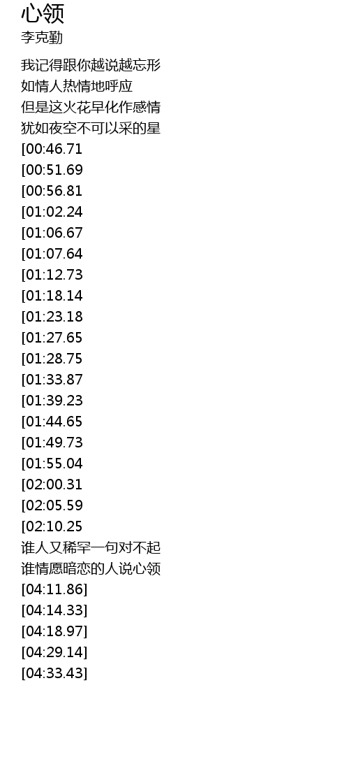 | [02:50.35][01:02.24] | 谁都只可能说心领 |