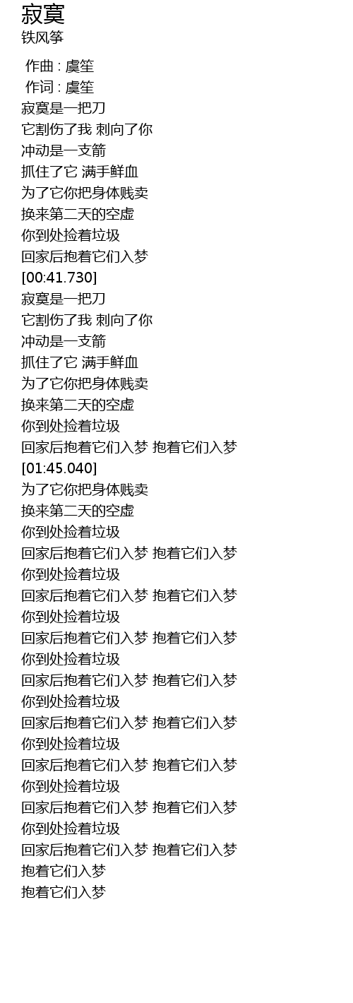 | [00:44.130] | 寂寞是一把刀 |