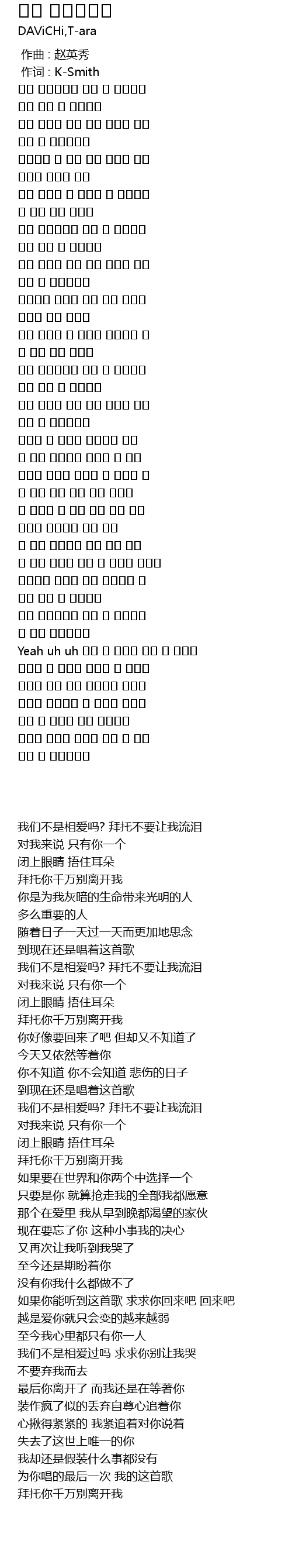 | [00:54.699] | 我们不是相爱吗? 拜托不要让我流泪 |